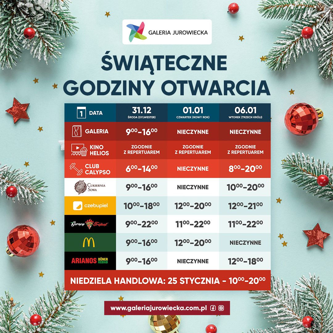 🎄 Świąteczne godziny otwarcia Galerii Jurowieckiej 🎄