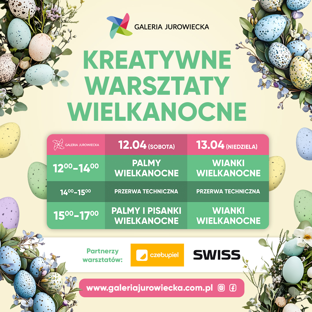 W dniach 12-13.04.2025r. w Galerii Jurowiecka odbędą się Warsztaty Wielkanocne.