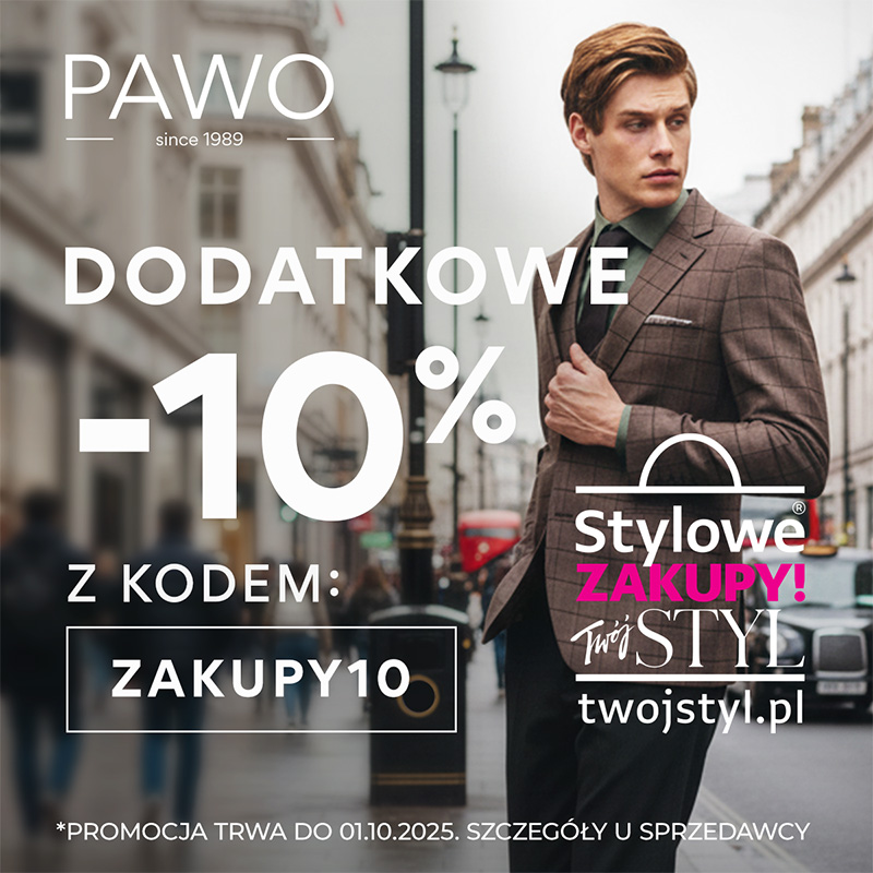 Od 26.09 do 01.10 zyskaj dodatkowe -10% na całą kolekcję męską – również na najnowsze propozycje z jesiennej kolekcji. Wystarczy, że przy kasie podasz kod: ZAKUPY10.